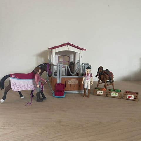 Schleich hestestald med heste og figur