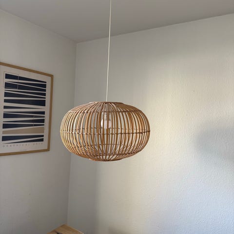 Sælger to flotte Muubs Fishtrap pendler i sort bambus (large). Lamperne giver et varmt og stemningsfuldt lys og passer perfekt over spisebordet, i køkkenet eller i stuen. Det karakteristiske design i bambus skaber et naturligt og eksklusivt udtryk i indretningen.