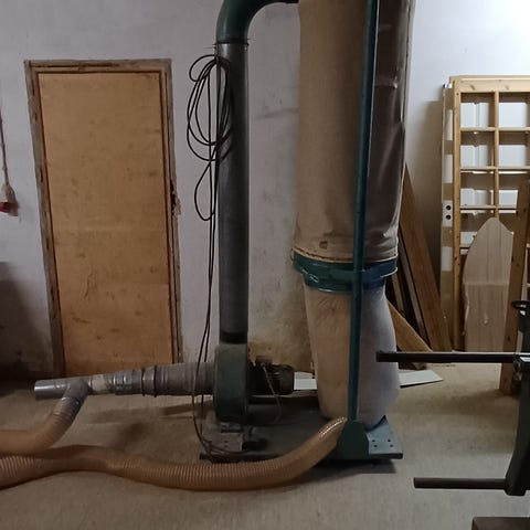 dog er årgang ukendt. Anlægget er egnet til udsugning fra f.eks. træbearbejdningsmaskiner eller andre arbejdsstationer, hvor der er behov for opsamling af støv og spåner.