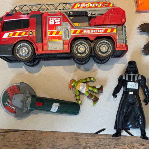 Blandet legetøj. Bamser, kostumer, dukkehus.