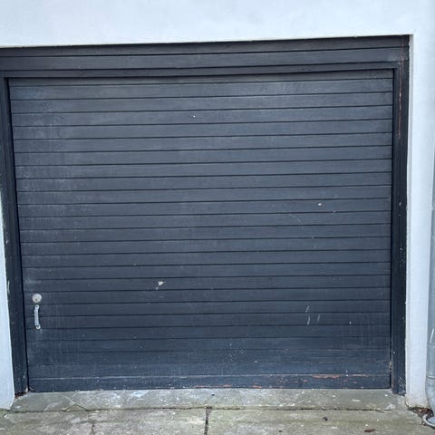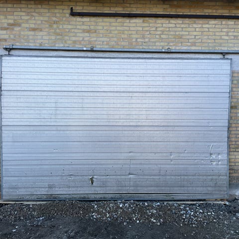 Brugt og tilpasset rulleport til et skur der aldrig nåede at blive færdig, før der kom nye planer.