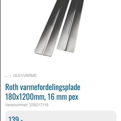 Varmefordelingsplader til gulvvarmesystemer, dimension Ø16x1150x180 mm.