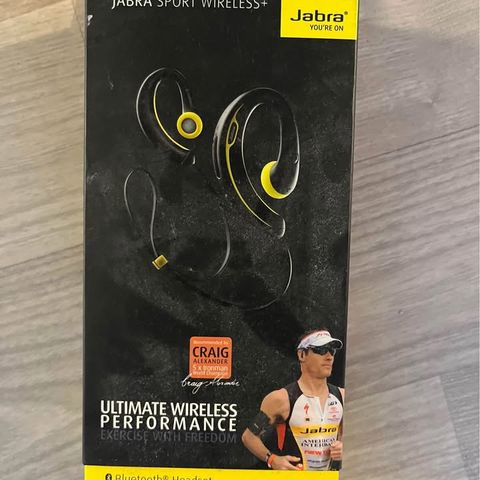 Bluetooth Jlab Go Sport. Kun brugt to gange, fordi jeg tilsyneladende ikke kan tåle Bluetooth. Det lille plasticværn over den del, som sidder inde i øret, kan tages af og evt. udskiftes. Nypris 349 kr.