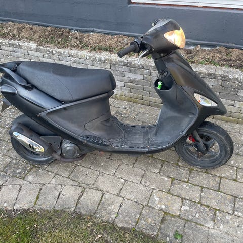 PGO scooter i sort farve. Modellen fremstår som en kompakt byscooter med plads til én person. Scooteren har sorte kåber, dobbelte forlygter og bagagebærer bagpå. Billedet viser også motorområdet under sædet, hvor der er adgang til motor og el-komponenter. Velegnet til kortere transport og daglig kørsel i byområder. Yderligere tekniske specifikationer som motorstørrelse, årgang og km-stand fremgår ikke af oplysningerne og bør derfor kontrolleres separat.