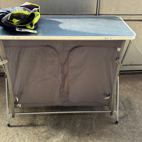 Campingskab med 6 hylder og fast topplade.