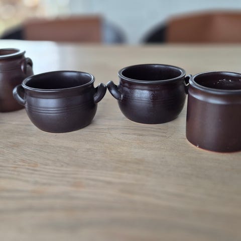 Dette er en klassisk syltekrukke eller krukke fra svenske Höganäs Keramik, ofte fremstillet i saltglaseret stentøj.