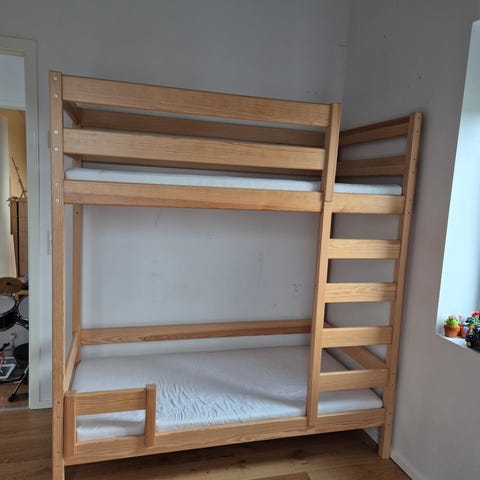 Rigtig fin gammel køjeseng til de mindste. Har stået i sommerhus og ikke brugt meget. Malet i fin blå farve.