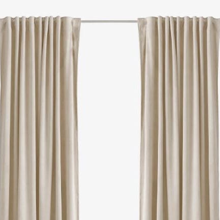 1 sæt tunge velourgardiner fra Jysk i en smuk rosa nuance.
