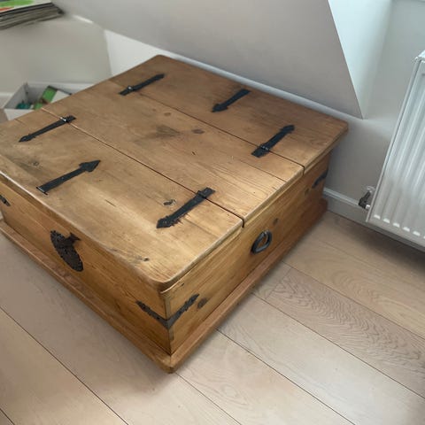 Flot sofabord i massivt fyrretræ med opbevaring under bordpladen. Dekorativt og praktisk. Også super anvendeligt som lege bord på børneværelset med plads til kasser på hylderne med Lego, tegnegrej, Brio tog...osv.