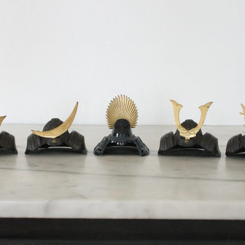 6 vintage miniature japanske samuraihjelme