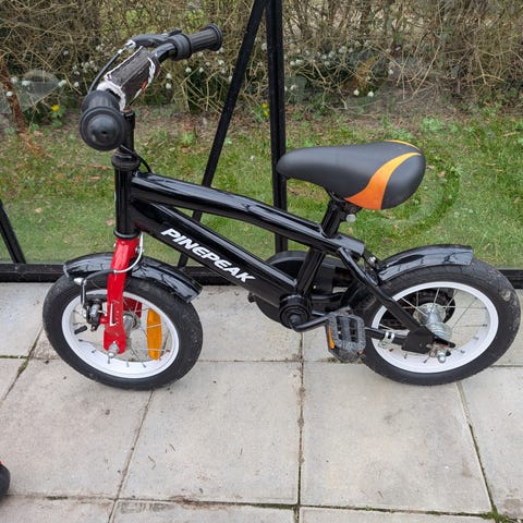 Cyklen er bygget med et robust stålstel og udstyret med aftagelige støttehjul, som gør overgangen fra balance til pedaler både nem og sikker. Den har håndbremse på forhjulet og fodbremse, fuld kædeskærm, ringeklokke og flere reflekser for øget synlighed.