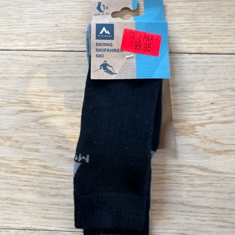 Vertical skisokker i størrelse 35-38. Sokkerne er fremstillet i en blanding af 49 % uld, 41 % akryl, 10 % polyamid og 1 % elastan. Farven er mørkeblå/sort eller grå/sort.