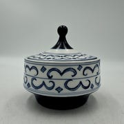 Krukken måler 32 cm. i diameter åbning/ 38 cm. i alt i diameter/ 26,5 høj og kan med fordel bruges som gulvkrukke eller stå i vindueskarm eller på møbel med sin gode størrelse.