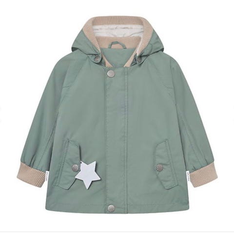 MINI A TURE tynd dunjakke i Aqua til børn, unisex, str. 152. Jakken er fyldt med dun og har gennemgående lynlås foran.