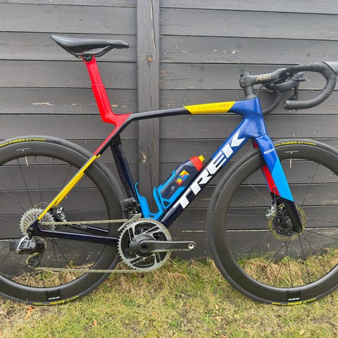 Skal du ud og være ligeså hurtig som Mads P eller Mattias Skjelmose? Så har du her chancen. Der er tale om en Trek Emonda i en special lakering der skulle have været til Touren i 2023 men Bauke Mollema blev ikke udtaget. Det er modellen, de brugte indtil juni 2024.