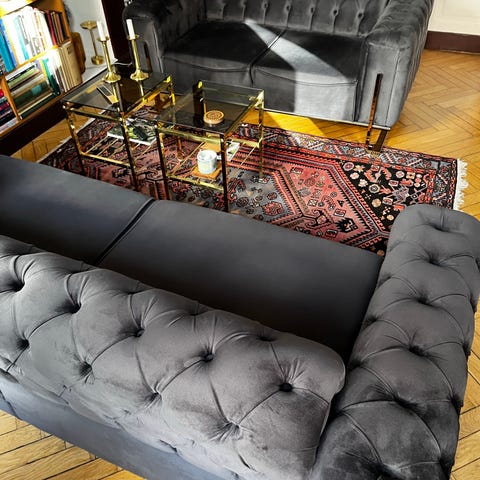 3 personers mørk grå Chesterfield