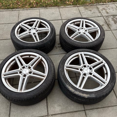 2 af fælgene Har diverse kantkys som ses på billederne, og det ene har en blød bule, som kan køres med men kan mærkes. 2 af fælgene er 7,5 ET 33 med 225/40 R18 og de to andre er 8,5 ET 34,5 255/35 R18