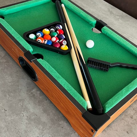 Mini billardbord med køer og tilbehør