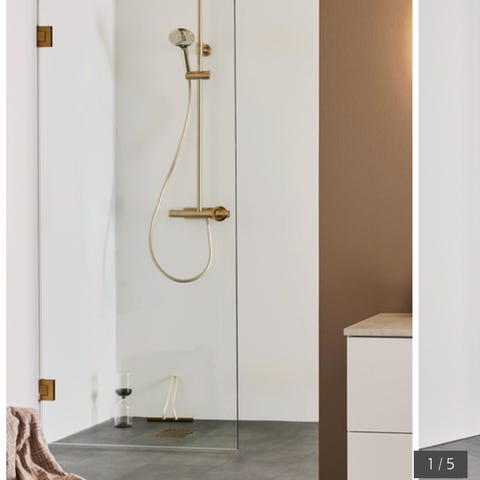 Dansani bruseafskærmning bestående af glasdør med tilhørende monteringsdele og vejledning. Sættet omfatter glasplade og hvide profiler/beslag til montering. Velegnet som brusedør eller brusevæg i badeværelse, hvor der ønskes en glasløsning med tilhørende fittings fra samme producent.
