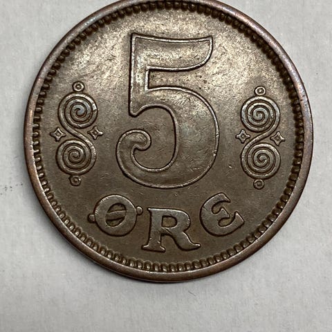 Sverige 5 øre mønt 1907.