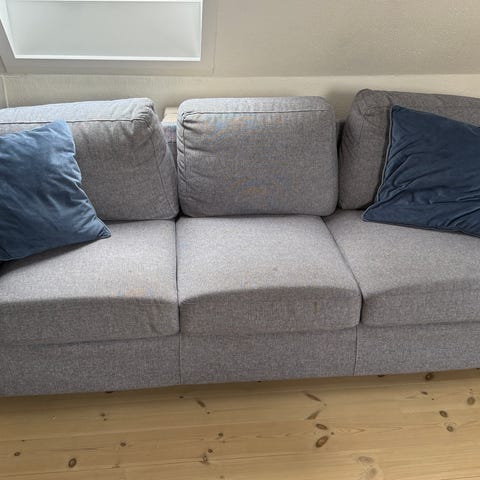 3-personers tremmesofa og 2-personers tremmesofa i uld og bøg bortgives. Afhentes på 4793 Bogø.