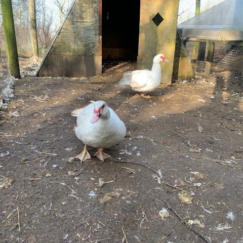 Moskusænder hvide fra oktober 2025. 2 ænder og en andrik. Beslægtede. Klar til sneglejagt eller fryseren. Prisen er stk og de skal afhentes i Løgstør.