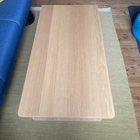 Bordpladen er i olieret egefinér, mens benene er i massiv olieret eg.