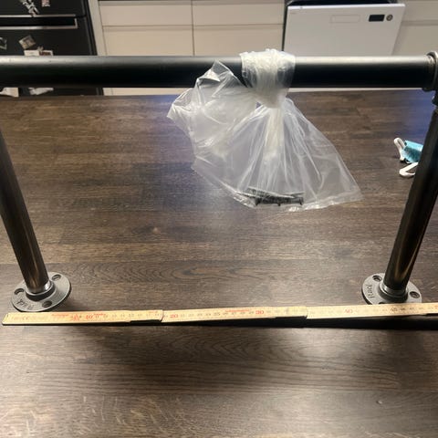 Væghængt bøjlestang i vandrør.