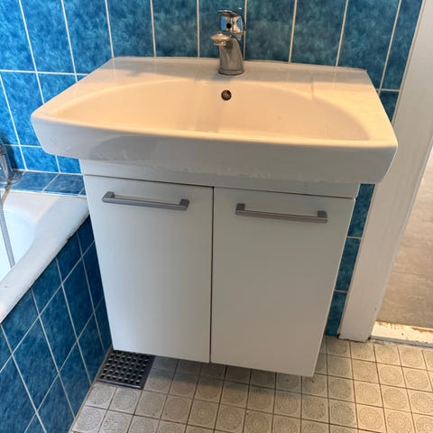 Lækker lille stilfuld badevask med underskab sælges. Passer perfekt til dit lille badeværelse.