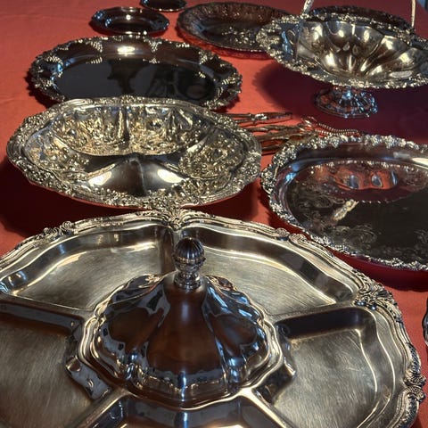 Sølvplet fade og diverse