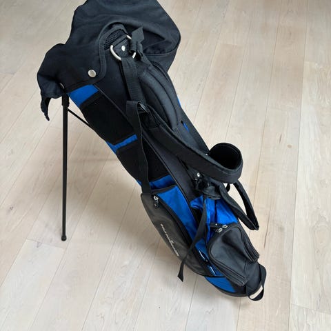 Golf bærebag med stativ. Tasken har flere lommer til opbevaring af tilbehør samt inddelt top til køller. Bæresystem med skulderremme og håndtag gør den egnet til at bære rundt på banen. Velegnet til opbevaring og transport af golfkøller og udstyr. Golfparaply medfølger.