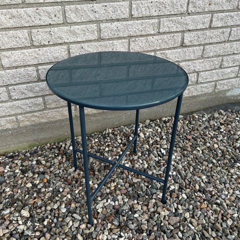 Lille cirkulært bord med glasplade.