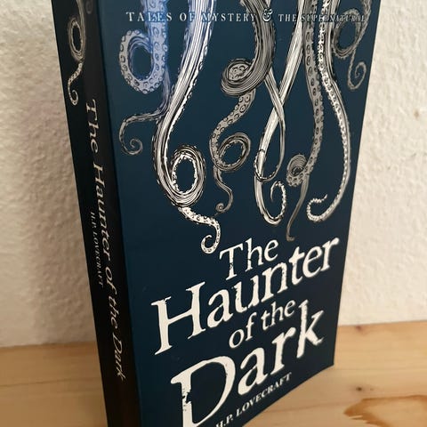 H. P. Lovecraft Collection bog med titlen "Classic Tales of Cosmic Horror". Paperback-udgave med samling af klassiske horrorfortællinger af H. P. Lovecraft. Omslaget er i mørke nuancer med grafisk motiv. Velegnet til læsere af horror- og fantasy-litteratur på engelsk.