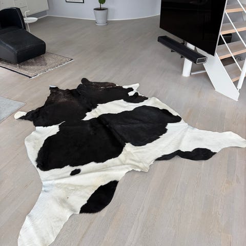 Lækkert koskind fra IKEA. Sort/Brun.Har kortvarigt ligget i stuen uden dyr og røg.Ca.Mål: 195X140 cm.