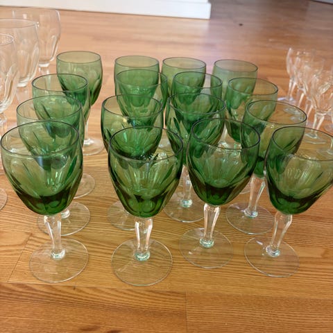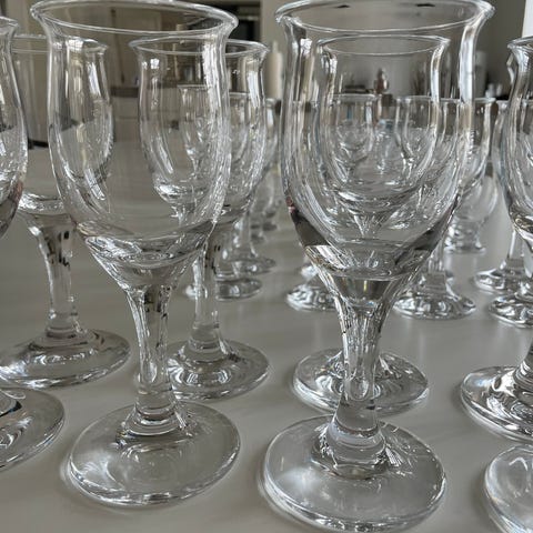 12 ølglas,6 rødvin, 3 hvidvin og6 snapseglas.