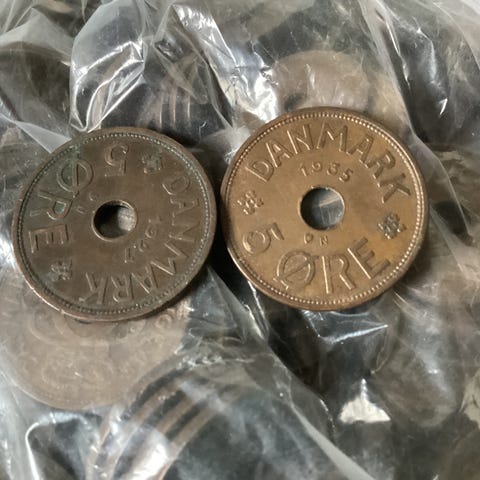 2 stk. kassetter med 10 øre (5 kr. pr. kassette)