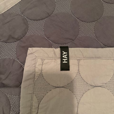 Nyt HAY Mega Dot sengetæppe og puder til dobbeltseng sælges til halv pris. Desværre købt i forkert størrelse.