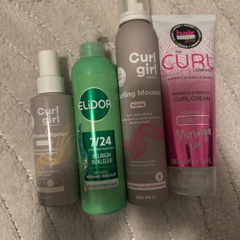 Curl Girl hårplejeprodukter til krøllet hår. Sættet består af en skum og en gel.