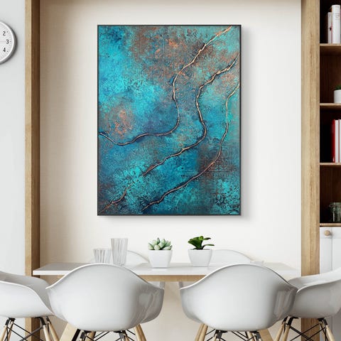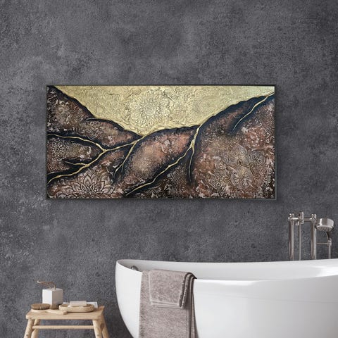 Maleriet er lavet med en speciel lys guld som skinner igennem og skaber en elegance og en dynamisk atmosfære.