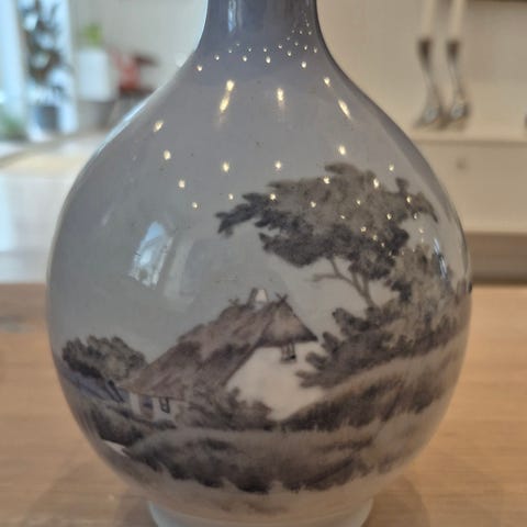 Kongeligt Porcelæn, vase med håndmalet maritimt motiv af et sejlskib.