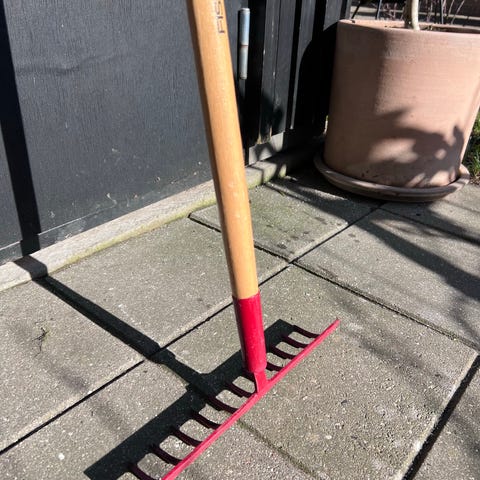 Fiskars løvrive med langt skaft og bred plast-rivehoved. Riven har sort skaft og plasttænder, der er velegnede til at rive blade, græs og mindre haveaffald sammen på græsplæne og andre udendørs arealer. Egnet til almindeligt havearbejde i haven eller indkørslen. Fiskars løvrive. Brugt et par gange. Som ny. Solid løvrive stor er en klassisk stor løvrive med aluminiumsskaft til havebrug. Hovedet er 52 cm bredt og fremstillet af slidstærk plast for den bedste holdbarhed. Pris 120 kr.