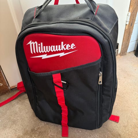 Milwaukee Packout værktøjsrygsæk i rød/sort. Rygsækken har flere indvendige og udvendige lommer og rum til organisering af håndværktøj og tilbehør. Den er udstyret med polstret skulderrem og bærehåndtag samt kraftig bund for stabilitet. Egnet til transport og opbevaring af værktøj på arbejdspladsen eller i hverdagen.