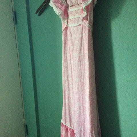 Studio Parisien. Brugt få gange. Der sidder elastik under barmen og ellers er kjolen løstsiddende. Kan også passes af større størrelser end M. Kjolen er kortere foran end bagtil.