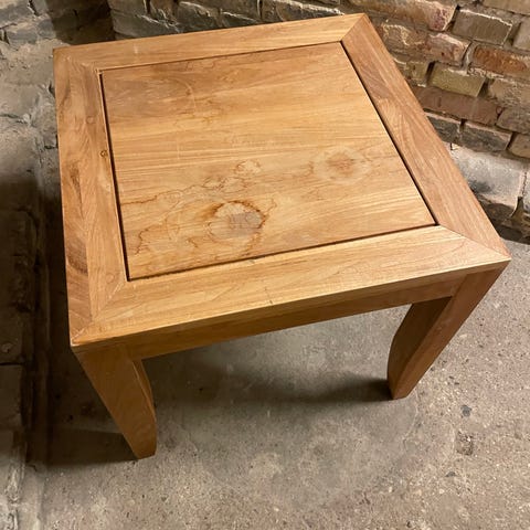 Lille bord i massivt egetræ skal sælges billigt og hurtigt Giv et bud højde 58,5 bredde 55 cm længde 85 cm fremstår rent og pænt og stærkt og funktionelt og jeg kan måske hjælpe medlevering toppen er lige blevet slebet