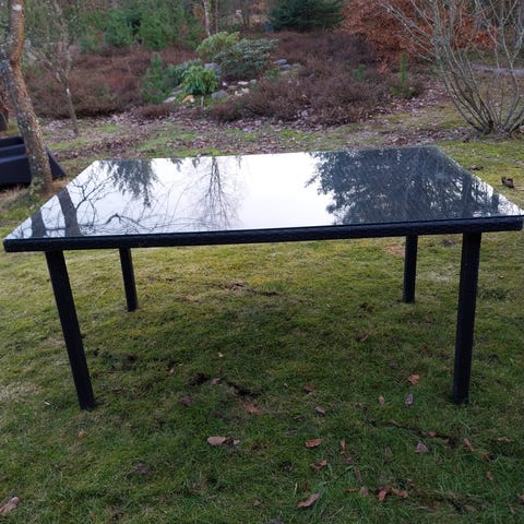 4. stk. havestole/lænestole, sort rattan, rustfrit stålstel. Har altid stået indenfor.