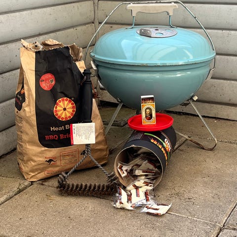 Den har været brugt og stået ude, så der er lidt rustmærker på ydersiden. Selve grillen fungerer perfekt endnu!