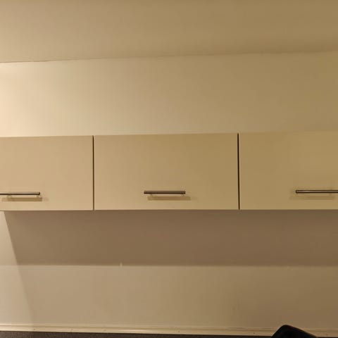 Mål på skabene er : bredde 89 cm dybde 32 cm højde 61 cm