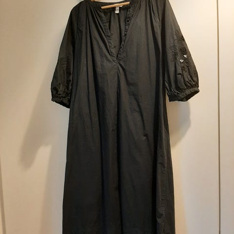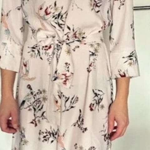 H&M hverdagskjole til kvinder i størrelse XL. Kjolen er i sort/hvidt mønster og er fremstillet i polyester. Modellen har korte ærmer, markeret talje og let A-formet skørt med læg, som giver god bevægelsesfrihed. Velegnet som hverdagskjole eller til arbejde. Klassisk ternet/houndstooth-lignende mønster, som fremgår af detaljebilledet.
