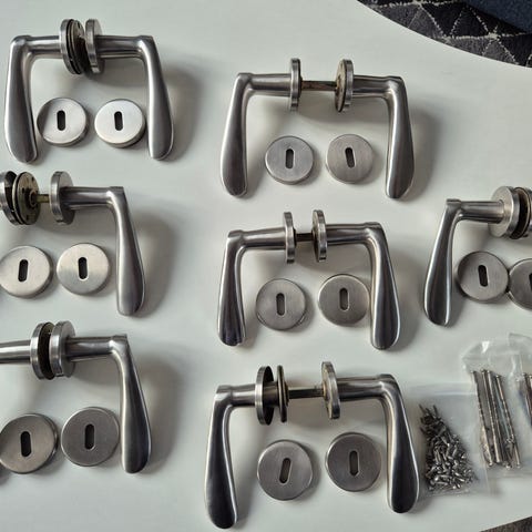 Har i alt 9 sæt + 1 ekstra der savner en pind (se sidste billed). Sælges med roset, men uden skruer.