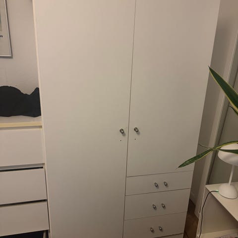Skab i god kvalitet med få brugsspor. Kan afhentes efter aftale i Rødovre. Højde 205 cm, bredde 150 cm, og dybde 55 cm.
